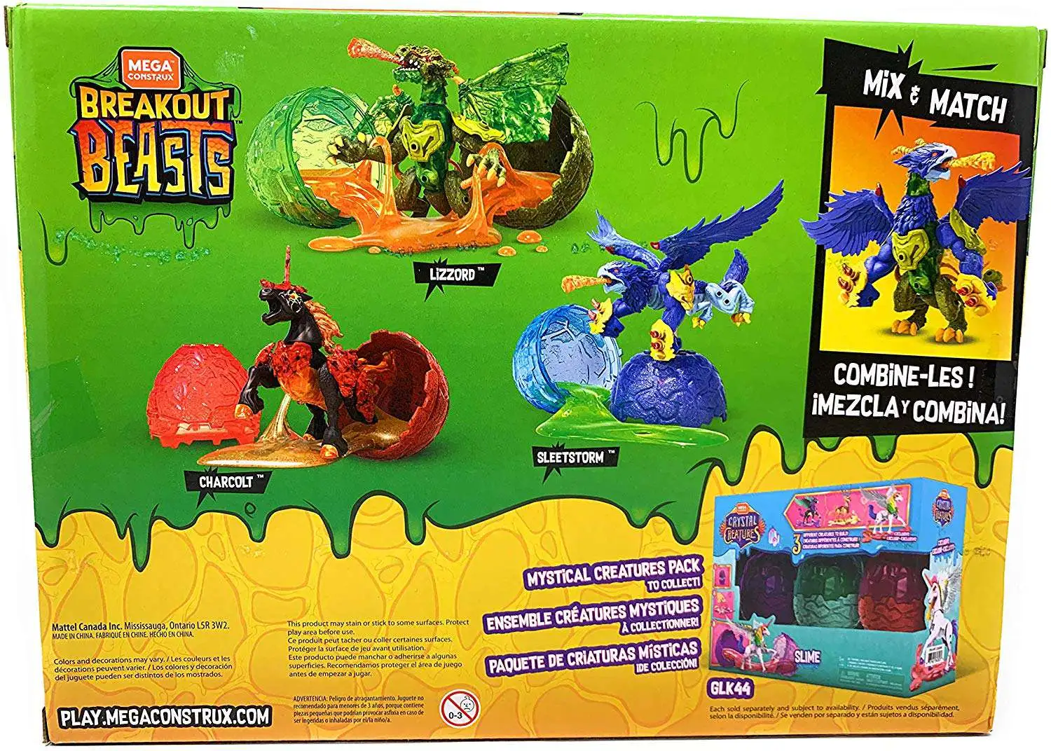 Unleash the beasts! Break open your mystery eggs to discover a slime surprise, then dig out all the pieces to build your beasts! With 3 cool creatures to build including the exclusive Lizzord the combinations you create will be a raawring success! Build your own beastly trio with Charcolt, Sleetstorm, and the ferocious Lizzord. Then, mix and match the beasts to create your very own Breakout Beasts!