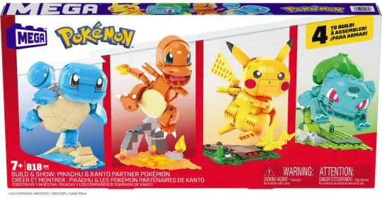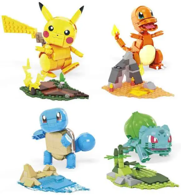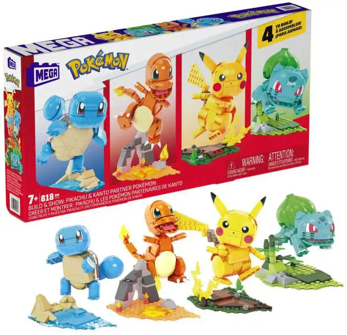 Build even bigger battles with this building set including Pikachu, Charmander, Squirtle and Bulbasaur. The Kanto starter Pokémon and Pikachu stand over 4-inches tall and can strike several heroic stances when you pose them in different battle-ready positions for a truly authentic building experience. MEGA Pokémon building toys are designed for ages 7 and up