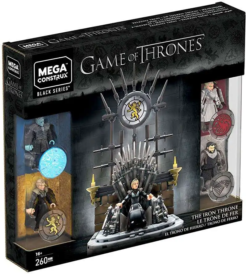 Ideal for Mega Construx Black Series collectors, ages 16 and up.?Features:?Buildable Iron Throne with interchangeable sigil mount that seats 1 micro action figure?4 highly-articulated micro action figures include Daenerys Targaryen, Jon Snow, Cercei Lannister and the Night King, authentically designed as they appear in HBO’s record-setting TV series, Game of Thrones?Accessories include 15 swords that can be removed from the throne, the Night King’s sickle and 4 respective sigils that represent each of the included characters’ Houses?Ideal for ages 16buy = ‘Y’;