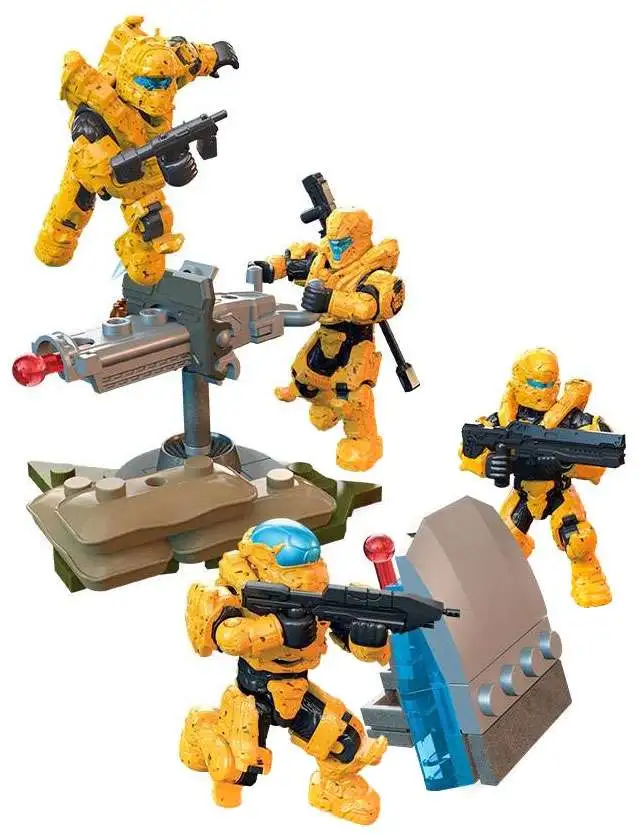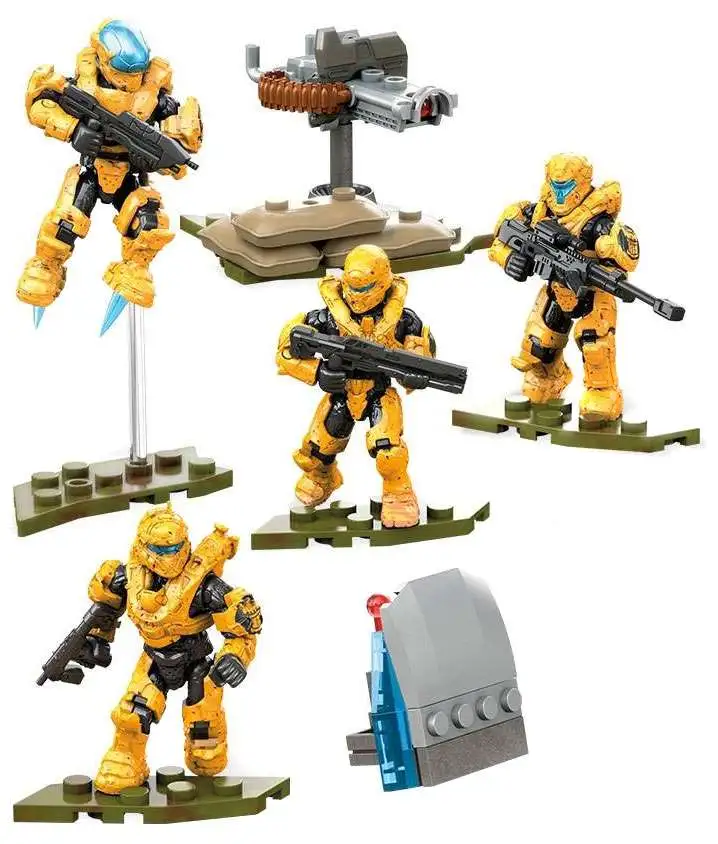 In the face of danger, the fearless Spartans of Fireteam Castle close ranks! Build your base and outfit your soldiers for battle using the authentic yellow armor and detailed weapons. Then take cover behind the buildable barricade and hold fast against the enemy when you return fire from the buildable turret gun!