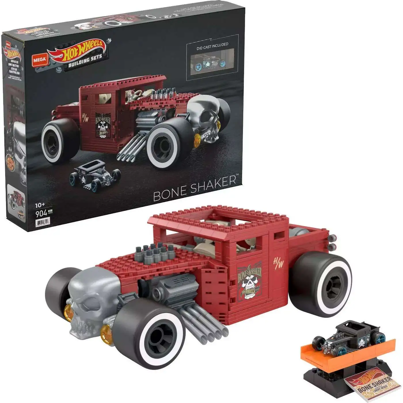 Features include rolling wheels, driver’s seat, doors and trunk that open, Bone Shaker’s iconic skull hood ornament, chrome-colored chassis and engine