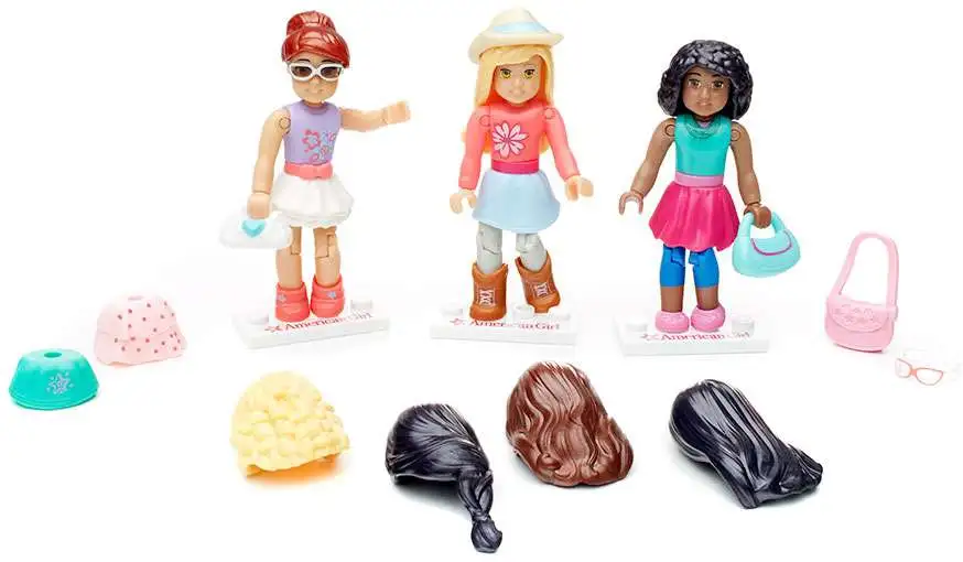 Three unique, highly detailed, fully articulated American Girl mini figures