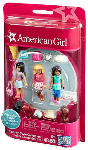 Build the story and tell it your way with the Uptown Style Collection by Mega Bloks American Girl! You can create a diverse world to play in when you build three unique mini figures! Customize your American Girls by changing their outfits and hair, and by swapping their accessories! You can personalize each girl to create an even bigger story starring your very own characters! Each figure is highly detailed, fully articulated, and offers a distinct look. Tailor your girls, then add them to your favorite American Girl stories or create your own!