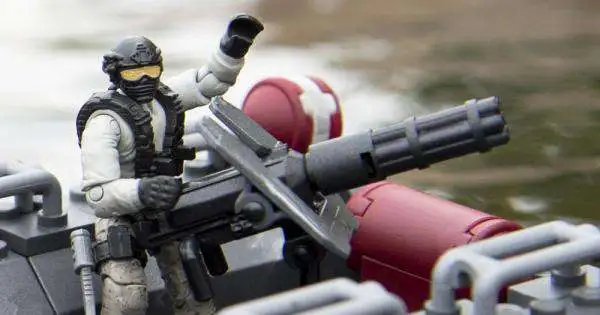 The Coastal Intercept features a highly detailed lightweight patrol boat designed for quick coastal defense duties. This buildable naval vessel measures 14.5 L x 4 W x 5.6 H in inches, and is armed with three light-caliber cannons pointing fore and a manned rotating Gatling turret on the aft. The Coastal Intercept includes three extremely poseable Navy SEAL micro action figures and highly detailed, authentic interchangeable accessories and weapons.