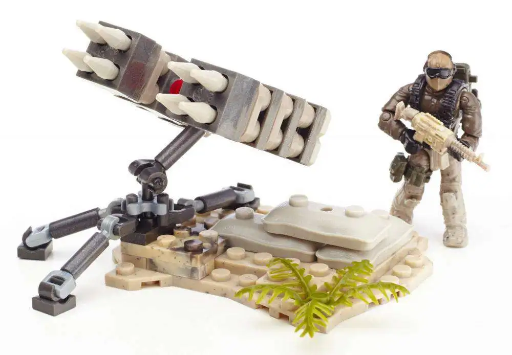 This Surface-to-Air-Missile (SAM) Turret is a powerful weapon used for assistance in countering enemy airstrikes, and allows for highly detailed authentic play. This buildable set includes a sandbag bunker, eight surface-to-air-missiles, and a buildable rotating launcher to help clear the skies. Specialized micro action figure is outfitted with an assault rifle, backpack and tactical vest, and is ready to deny the enemy the advantage of air support.