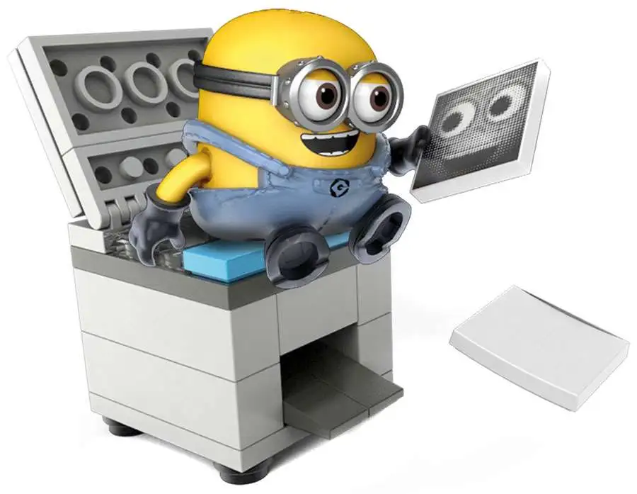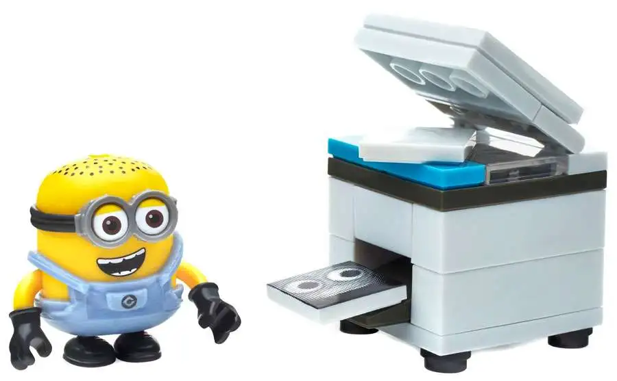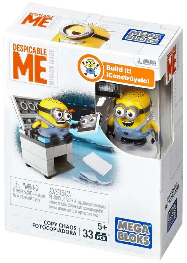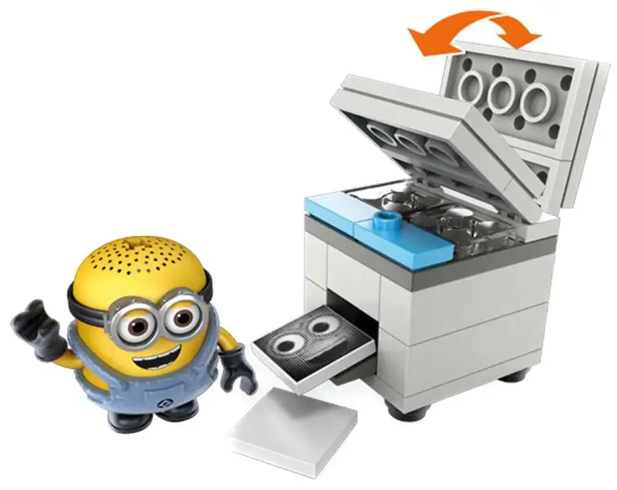 Trouble is hot off the press when one of the Minions starts causing Copy Chaos by Mega Bloks Despicable Me! This Minion has been left alone with a copy machine, but before long, a paper jam turns into some serious mischief. Build the copy machine and your Minion, and feed one of the paper sheets into the machine, sending a silly print through to the other side. Then, things get really crazy when you load another sheet into the printer and use the launcher to send the page flying high through the air!