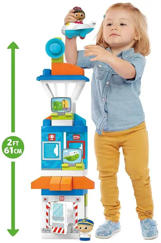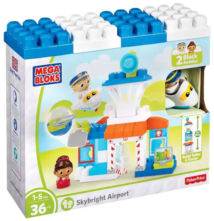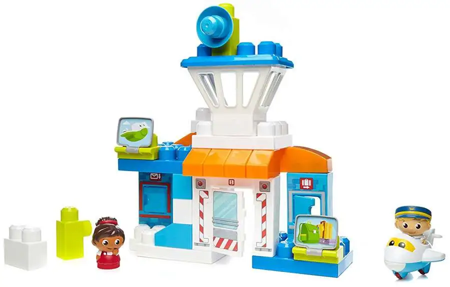Your little one can take to the skies when they use the blocks, special shapes, and big building panels to create a busy airport full of exciting discoveries! Build the airport, adding the control tower on top. Then, get ready to fly when you roll out the friendly plane, sitting one of your Block Buddies in the pilots seat as the other directs from the tower! Open the airports swinging doors to help your Block Buddies deliver a parcel or pick up luggage.