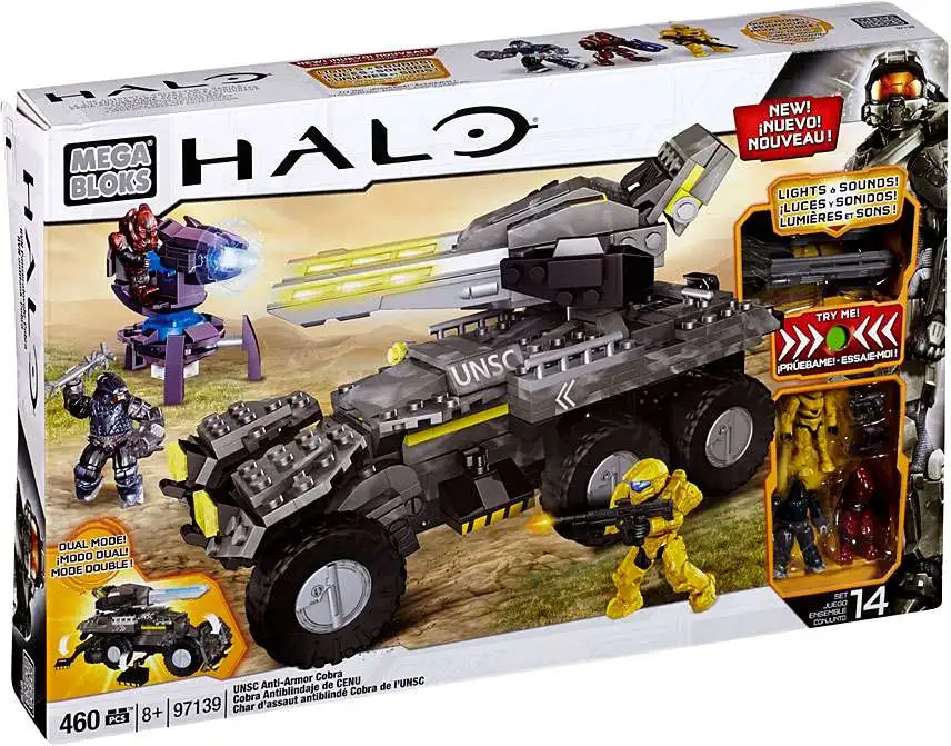 Featured with dual transformation, lights and in-game sounds, the Mega Bloks version of the Halo UNSC Anti-Armor Cobra lets you create the battle like never before!