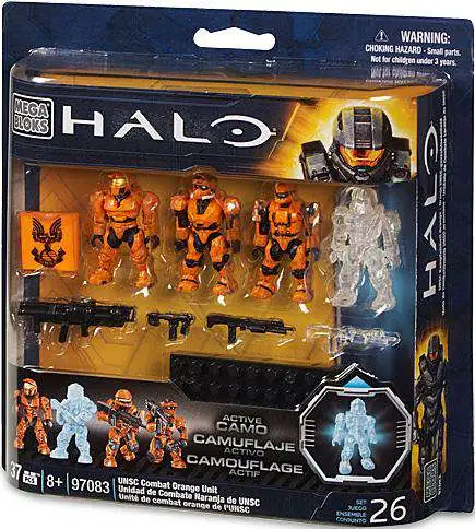 Establish your army, build and expand your units with the Halo UNSC Combat Orange Unit by Mega Bloks! The UNSC Combat Orange Unit is a multi-role Spartan strike team. Consisting of a UNSC Spartan, Spartan EOD, Spartan Scout and an active-camo Spartan CQB, the team is ready to move out on a moments notice.