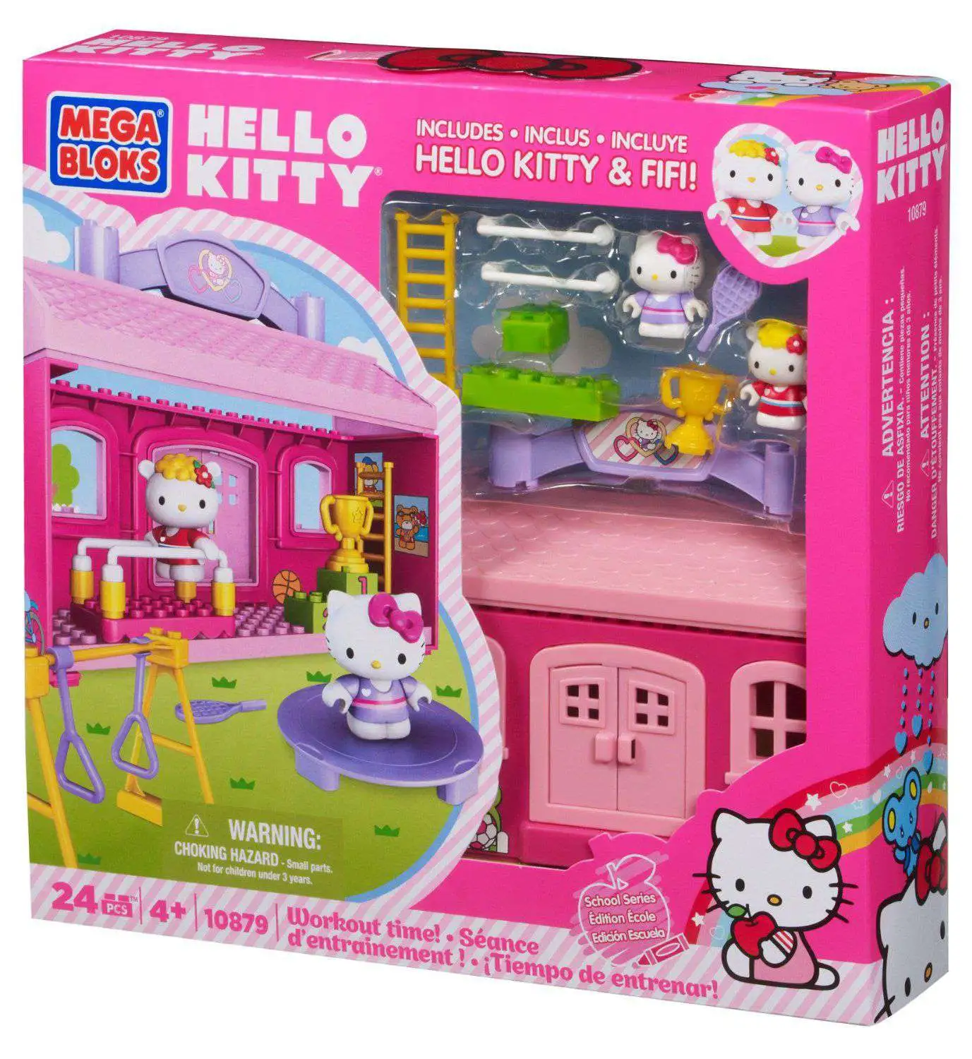 The Mega Bloks Hello Kitty Workout Time! (10879) takes Hello Kitty and Fifi to the gym. Cheer on Hello Kitty as she plays an exciting game of tennis and help Fifi do some flips on the monkey bars. With a number of accessories, you can create and decorate your gym and build all sorts of great exercise equipment. Encourage a love of fitness with the Hello Kitty Workout Time buildable playset from Mega Bloks.