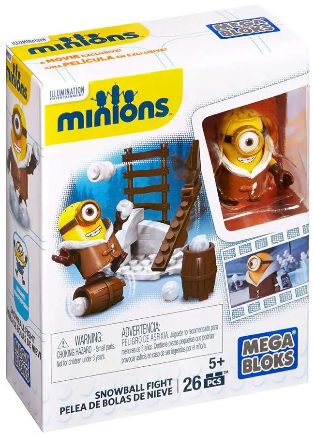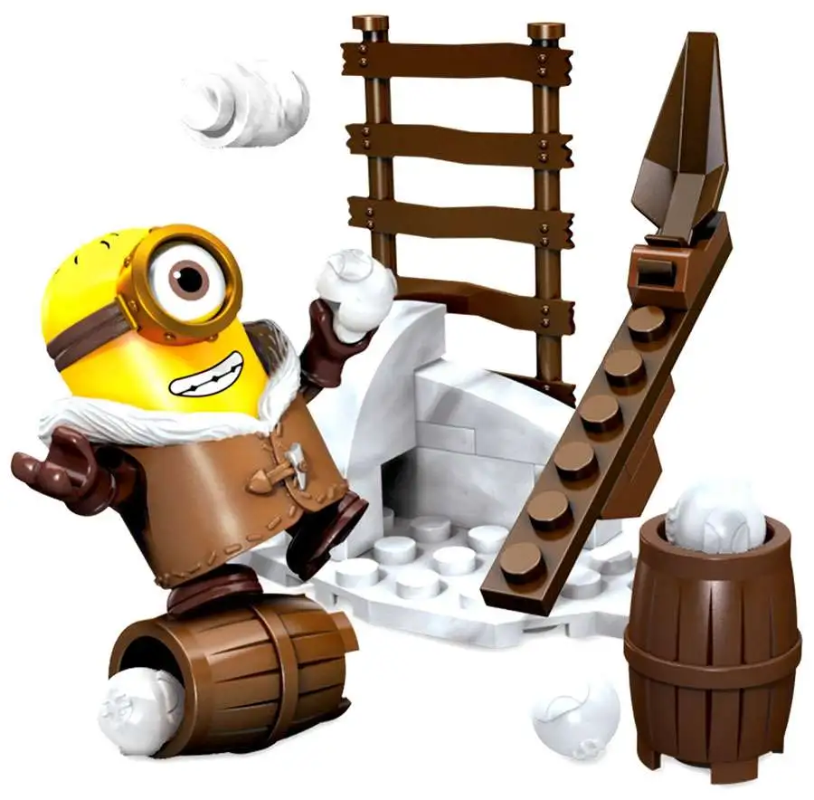 Its a lazy day in the Antarctic village when suddenly someone throws a snowball and the Minions go bananas! You can build your Minion and throw him into the action to cause a polar meltdown in Snowball Fight by Mega Bloks Minions. Take cover behind the barrels, then fire back using the launcher to send snowballs flying into the air! The Minion comes dressed in a polar coat and removable goggles, ready for some cold weather chaos.