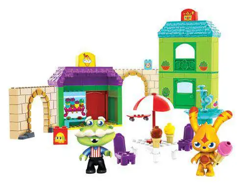 Create and customize the fantastic world of Moshi Monsters! Add to your childs Moshi Monsters collection or start it off right with the Moshi Monsters Ooh La Lane by Mega Bloks. Within this huge 99 piece set are two lovable figures, including Katsuma and Giuseppe Gelato, plus a surprise moshling! Your child can make both monsters build ice cream cones at the Ice Scream Shop on a hot afternoon or use the brightly colored pieces to create Gabbys CafΓ© where they can grab a yummy snack. Build it exactly like its shown in the Moshi Monsters online game or your child can design a whole new street in Monstro city! There is no limit to what your child can create with Ooh La Lane!