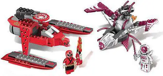 Buildable Nighlok fighter with Deker, Power Rangers Hydrofoil with Battle-Damaged Red Ranger