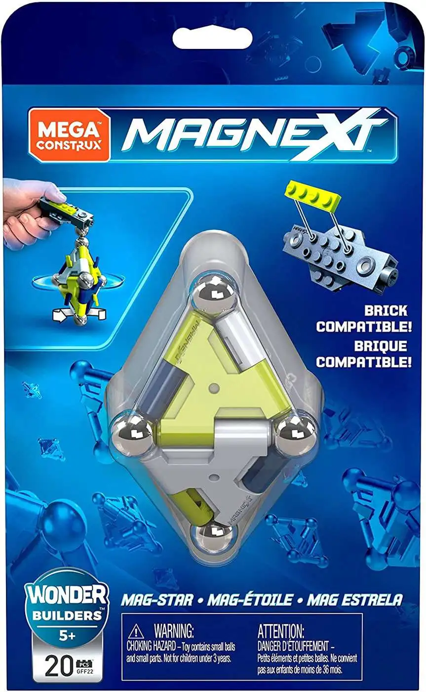 Shoot for the stars with buildable magnets! Make geometrical forms like pyramids and diamonds with the Magnext Mag-Star. Magnext features innovative panels and an interlocking construction system so you can build with bricks and magnets. Tough and sturdy, you can suspend your Mag-star in the air and spin it with the help of the included magnetic building brick. Combine the Mag-Star with other Magnext toys for even more inspiring ways to build. The power of magnetism is yours to play with! Ideal for ages 6 and up