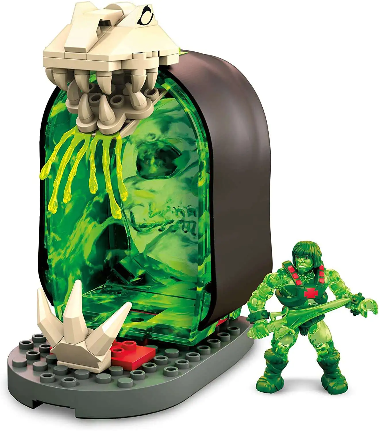 Get inside Skeletor’s head and discover one of the Evil Horde’s most gruesome traps. This collectible building set is scaled for construction and features the infamous Horde Pit with buildable dinosaur skull and claw, and simulated slime to replicate ooze dripping down onto the included micro action figure. Trap Zombie He-Man under the ooze accessory to recreate his transformation, then pack up the pieces inside the skull for portable power.Probuilders building toys are designed for ages 8 and up.