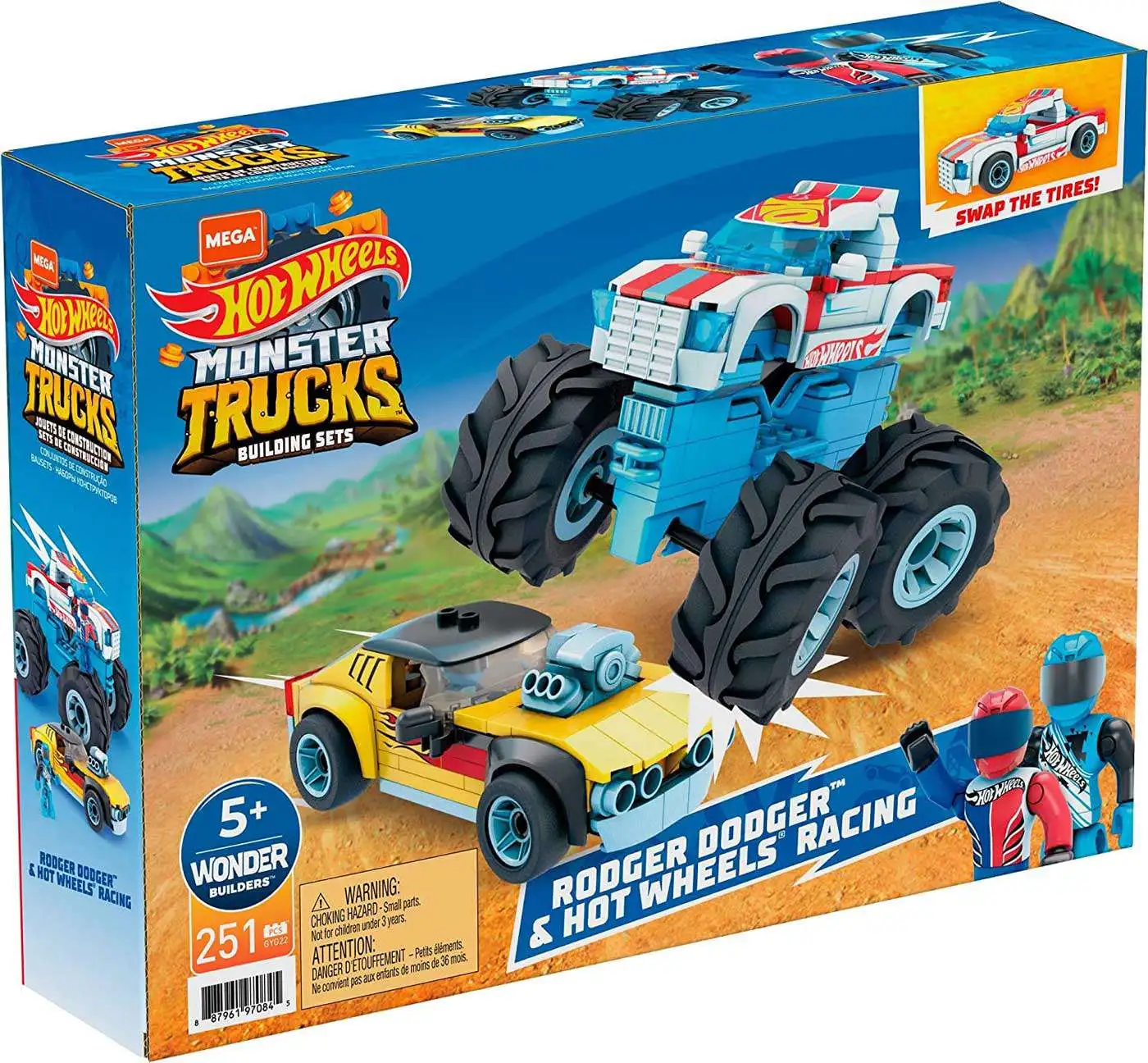 Burn rubber and smash the competition with a buildable Hot Wheels construction set that includes the classic Rodger Dodger racer and Hot Wheels Racing monster truck. The set features authentic Hot Wheels details such as Rodger Dodger’s exposed chrome engine and the iconic red, white and blue paint job and giant wheels of Hot Wheels Racing. Combine the included bricks and pieces from both vehicles, with any Mega Construx building set, to build your own custom cars.