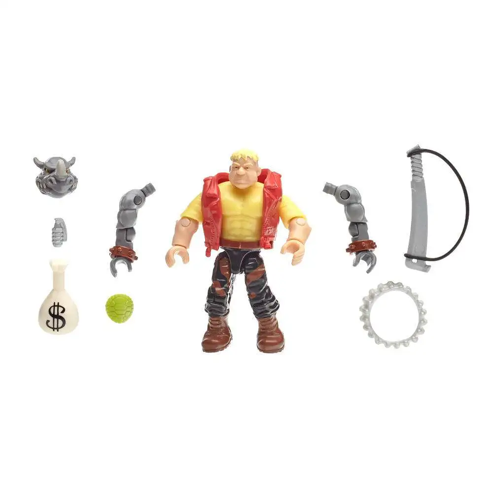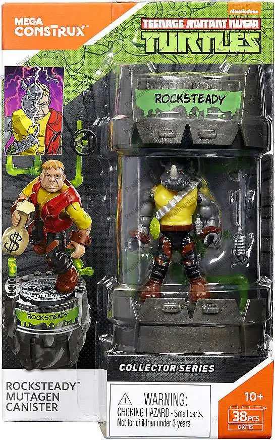 Create Rocksteady’s origin and mutate him into a ferocious, hulking rhino! The origin of Turtles’ roughest, toughest (and most incompetent) villain is revealed when you create this horrific mutation! Build the brutish thug, then mutate him from man to rhino when you swap out classic accessories including rhino arms and head! Connect Rocksteady to the buildable pipes backdrop with ’87 animated series-themed high res panels to create the most radical Turtles villain display! Ideal for ages 10 and up.