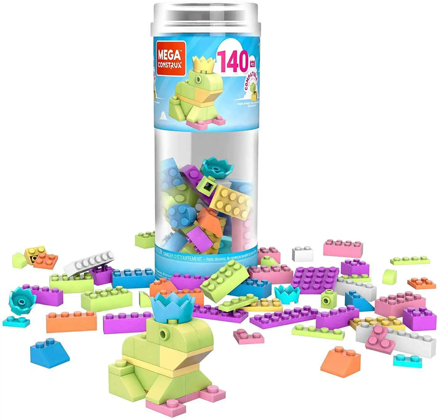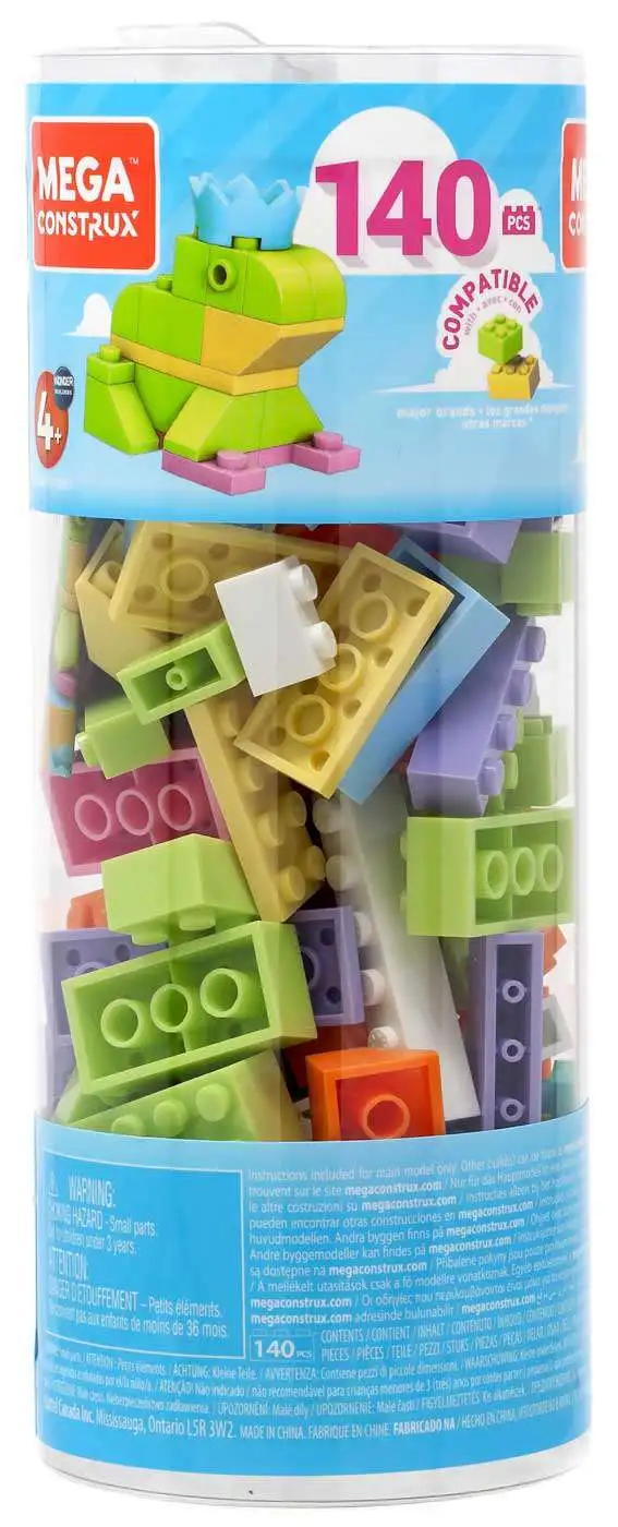 Get creative with this building tube featuring 140 building bricks and special pieces in pastel colors. With so many possibilities, this construction set can be used to build a frog prince, candy, heart and anything you imagine. Perfect for builders of all skill levels, these bricks can be combined with any Mega Construx building set and are also compatible with other name brands. Add some color to your brick collection. Ideal for Wonder Builders, ages 4 and up