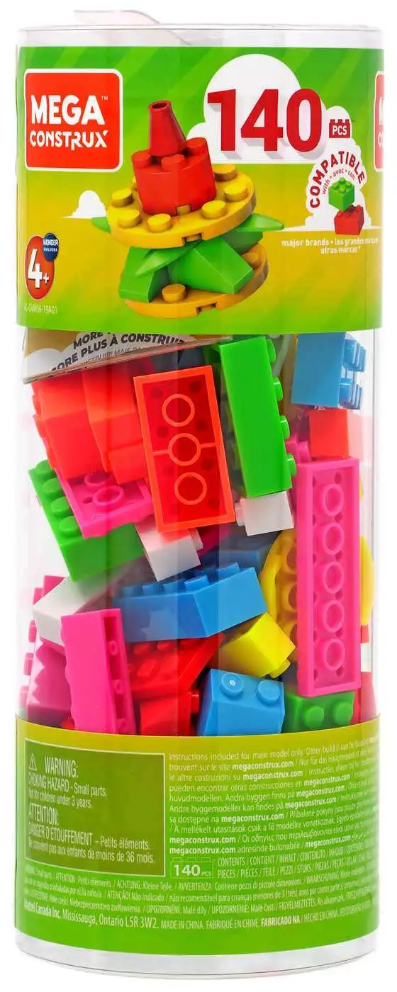 Get creative with this building tube featuring 140 building bricks and special pieces in fluorescent colors. With so many possibilities, this construction set can be used to build a spinning top, lama, piata and anything you imagine. Perfect for builders of all skill levels, these bricks can be combined with any Mega Construx building set and are also compatible with other name brands. Add some color to your brick collection. Ideal for Wonder Builders, ages 4 and up.
