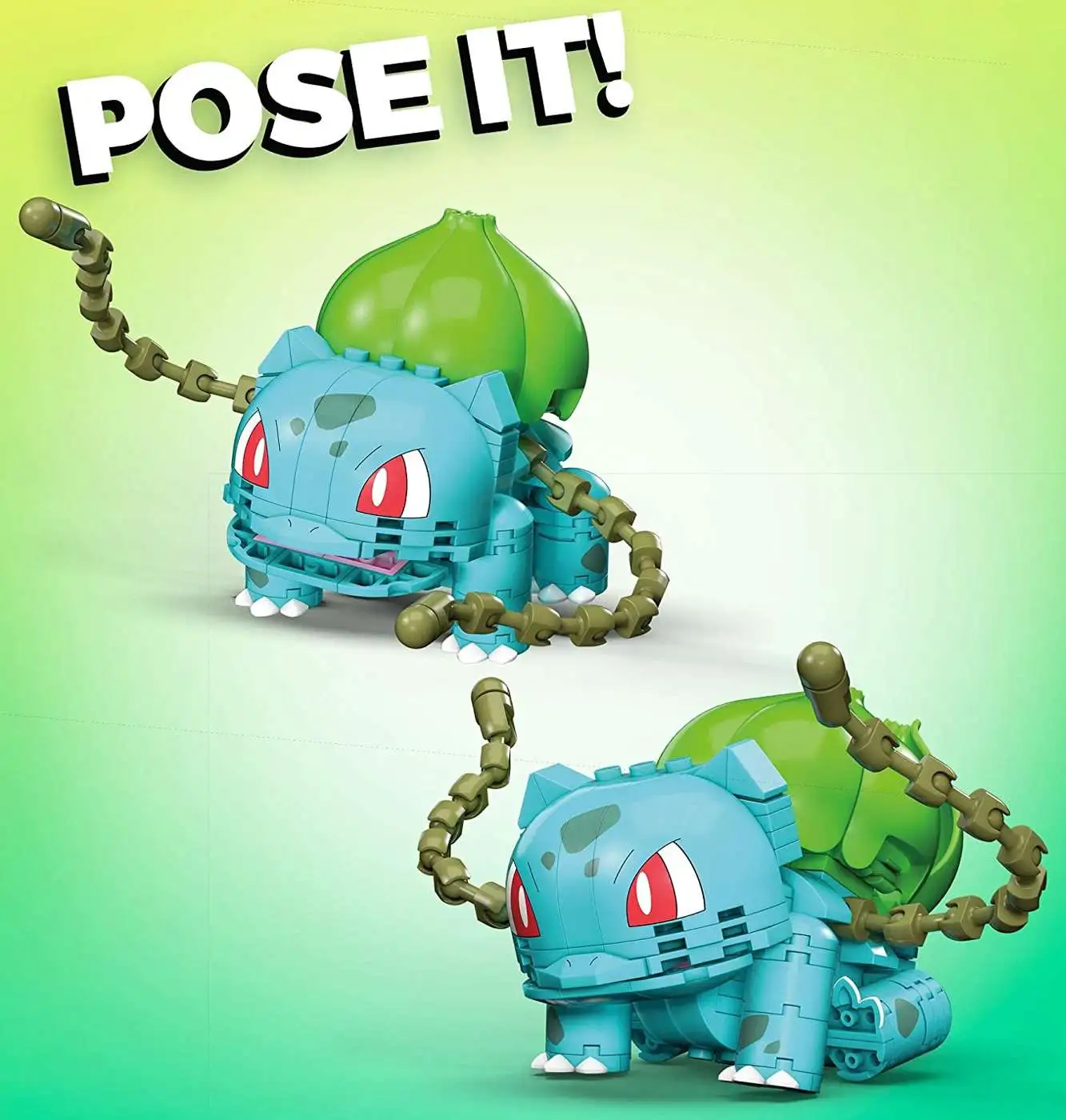 Build even bigger battles with this Bulbasaur construction set. This Grass-type Pokémon stands over 4-inches tall and can create a number of heroic stances when you pose it in different battle-ready positions. This faithfully modeled Bulbasaur includes Grass-type battle effect details for a truly authentic building experience. Ideal for Wonder Builders, ages 6 and up.