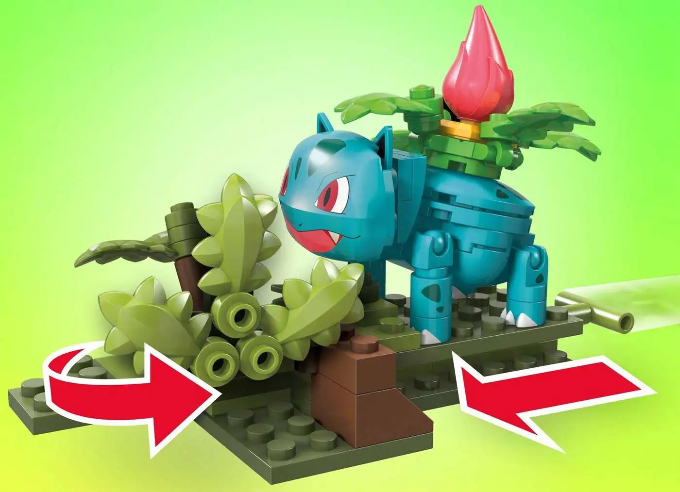 Plant yourself into battle with this Ivysaur building set. The Grass/Poison-type PokΓ©mon hides behind a buildable bush and reveals itself with a hand-activated sliding feature. This faithfully modeled and fully articulated Ivysaur includes a powerful grass-type move for a truly authentic building experience.