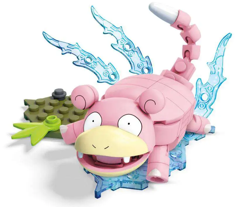 Get super-psyched for battle when you build the action with Slowpoke! Pokémon Trainers can get psyched for battle with their very own Slowpoke! Build this all-time favorite Pokémon, and set the scene when you build a Water-type environment. Make a splash when you swing Slowpoke’s powerful tail to spray the water around! Then take on your next opponent when you add the buildable water effect details to unleash another attack!? Ideal for ages 6 and up.